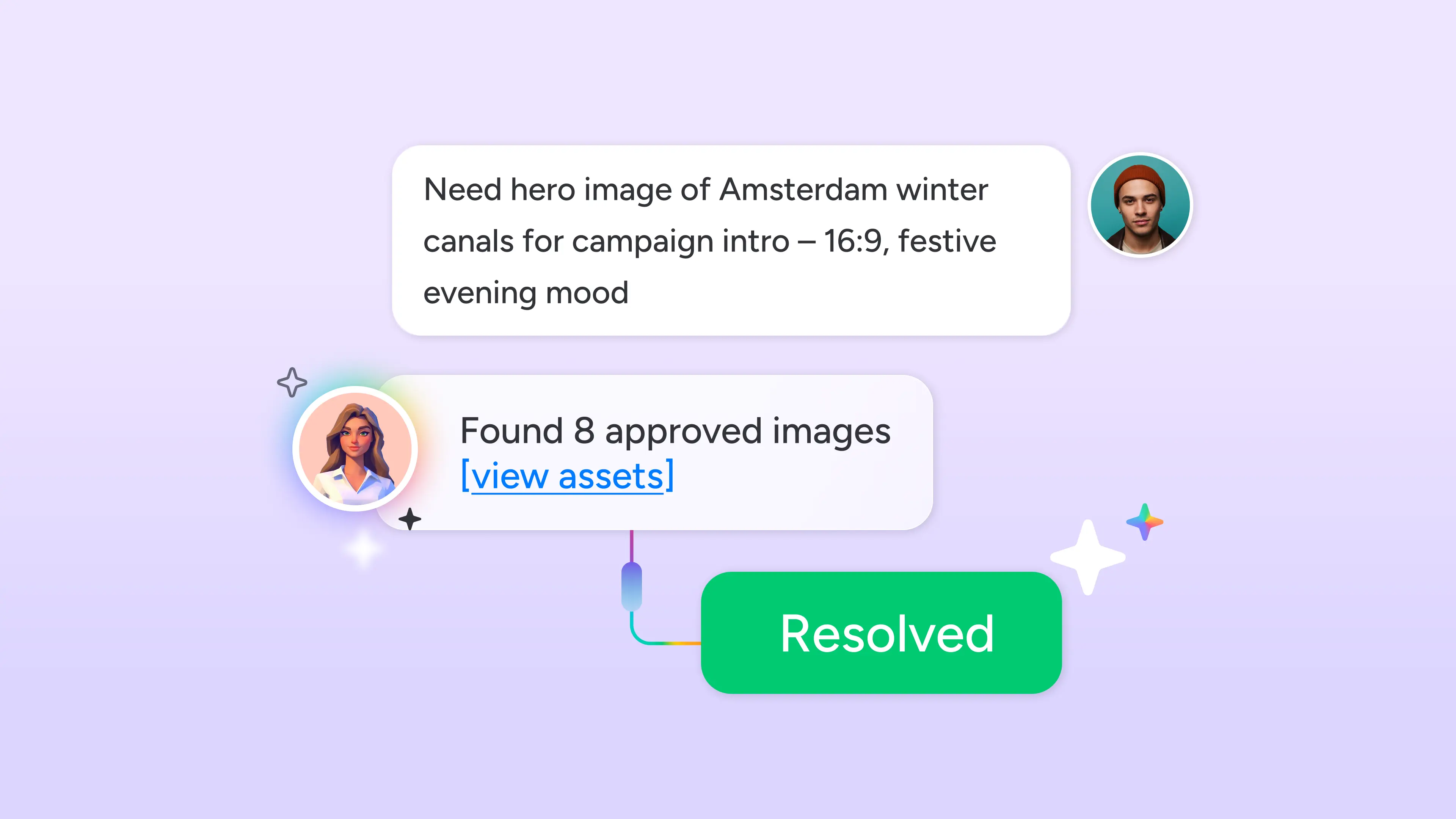 This entire process happens in seconds. What used to take hours or days—finding the request in your inbox, locating the right asset, checking which version is current, attaching it with proper usage guidelines—now happens instantly and automatically.