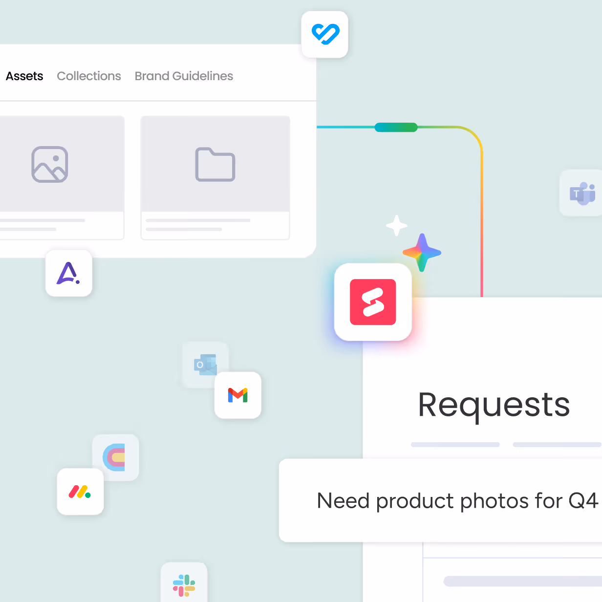 Answers and assets come from your brand guidelines, templates, and DAM—so teams get the latest approved versions, not guesswork.