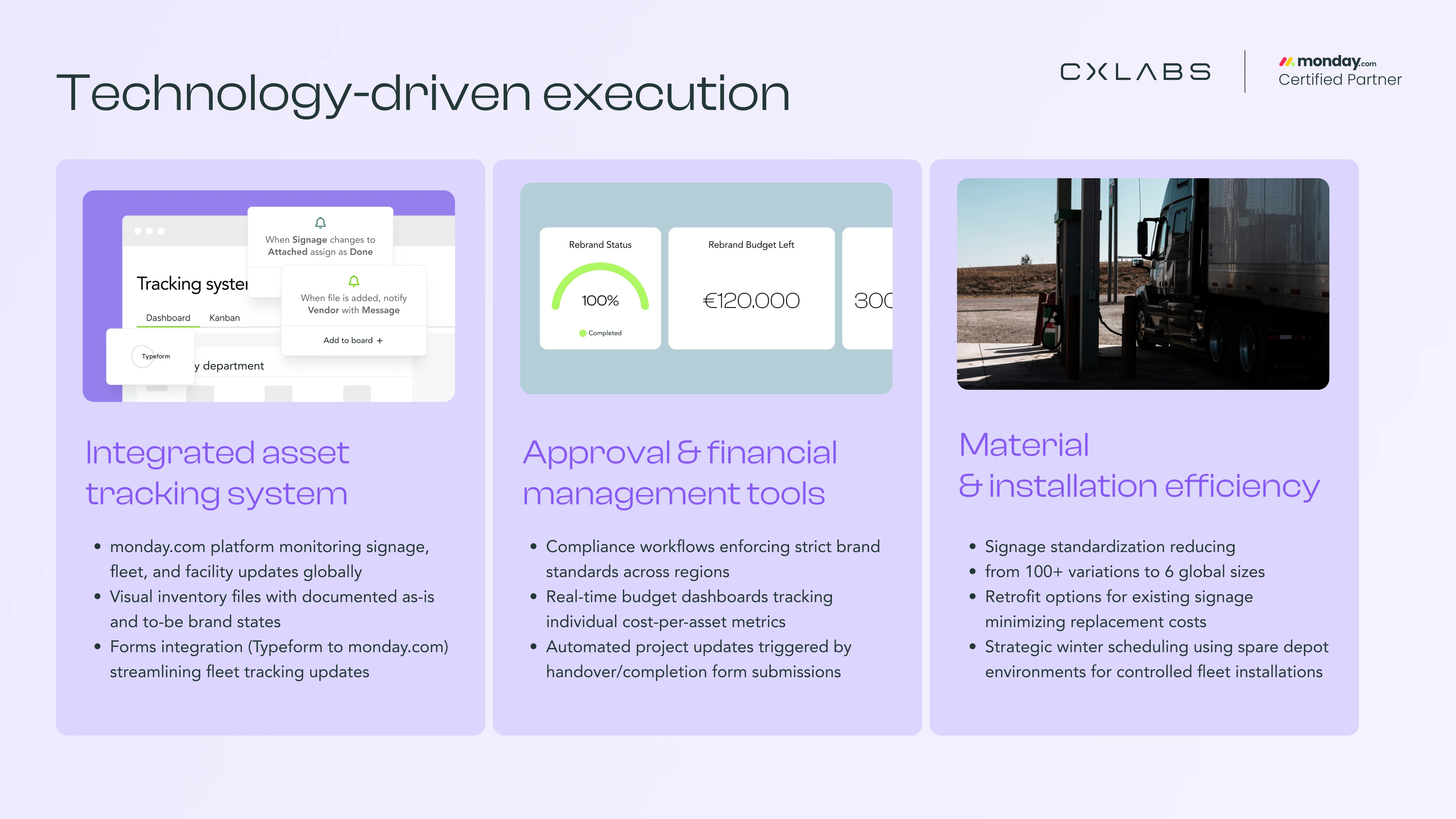 - Signage standardization reducing from 100+ variations to 6 global sizes