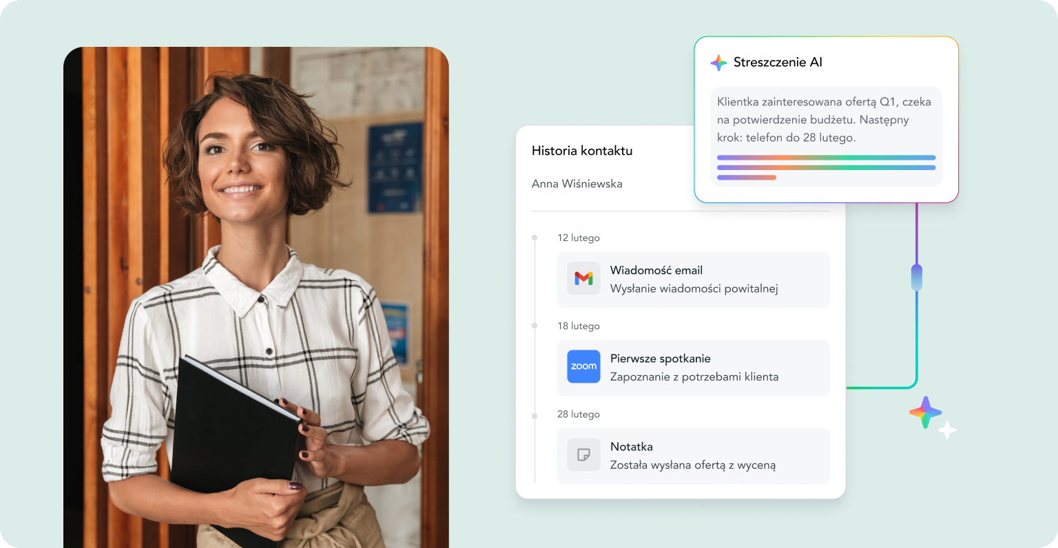 - Brak pełnego obrazu klienta — niemożność szybkiego dotarcia do pełnej historii zapytań, zamówień i dokumentacji w jednym miejscu